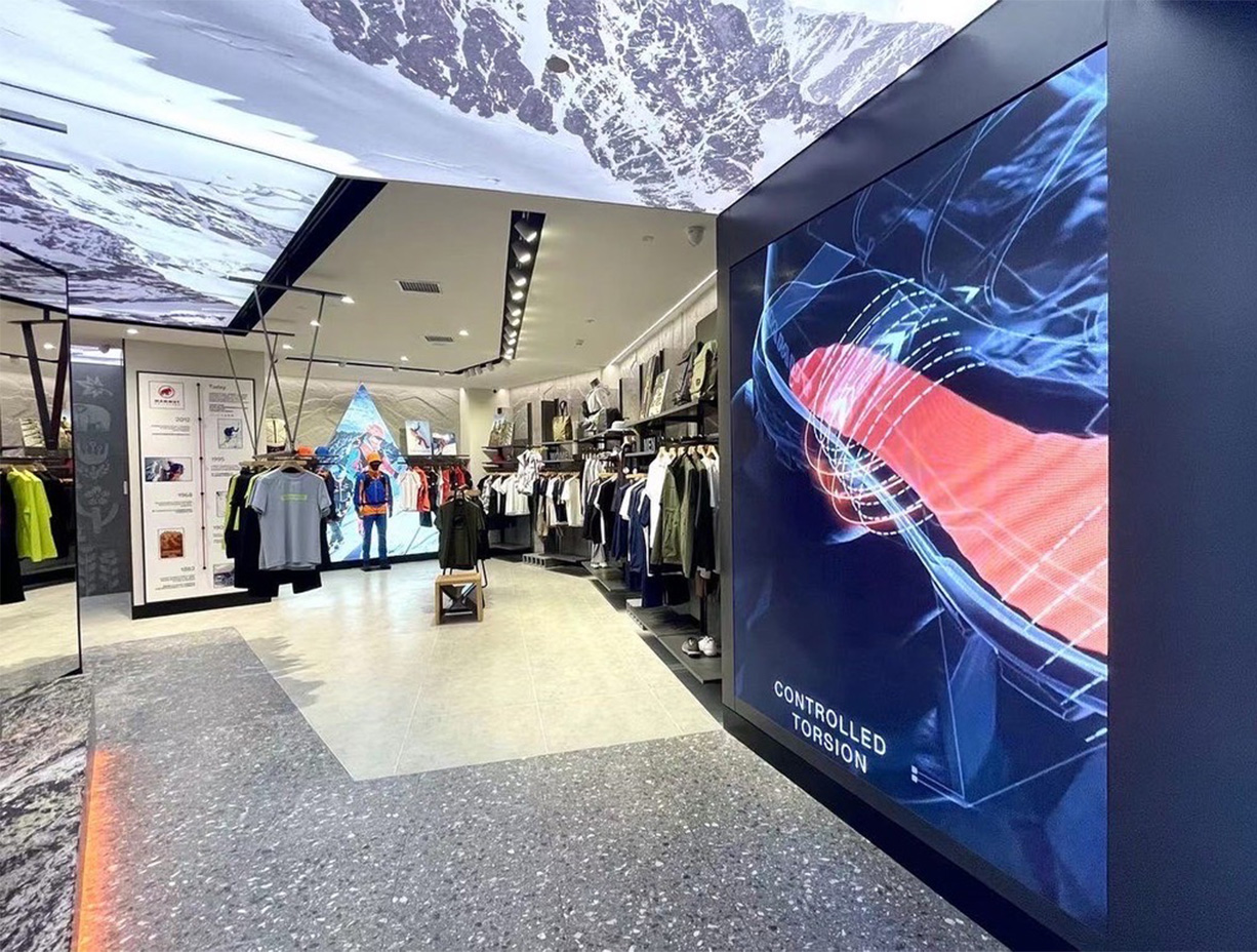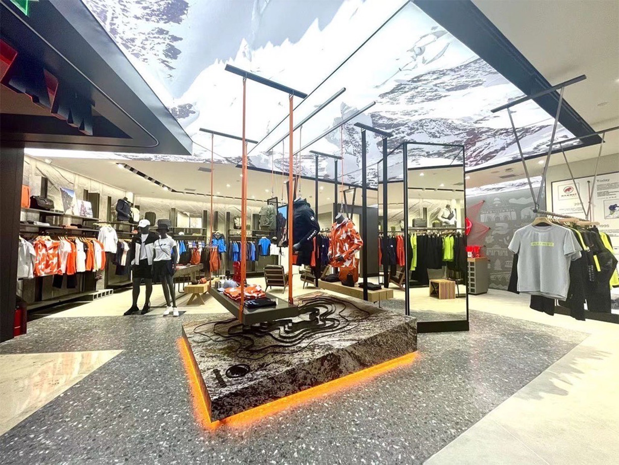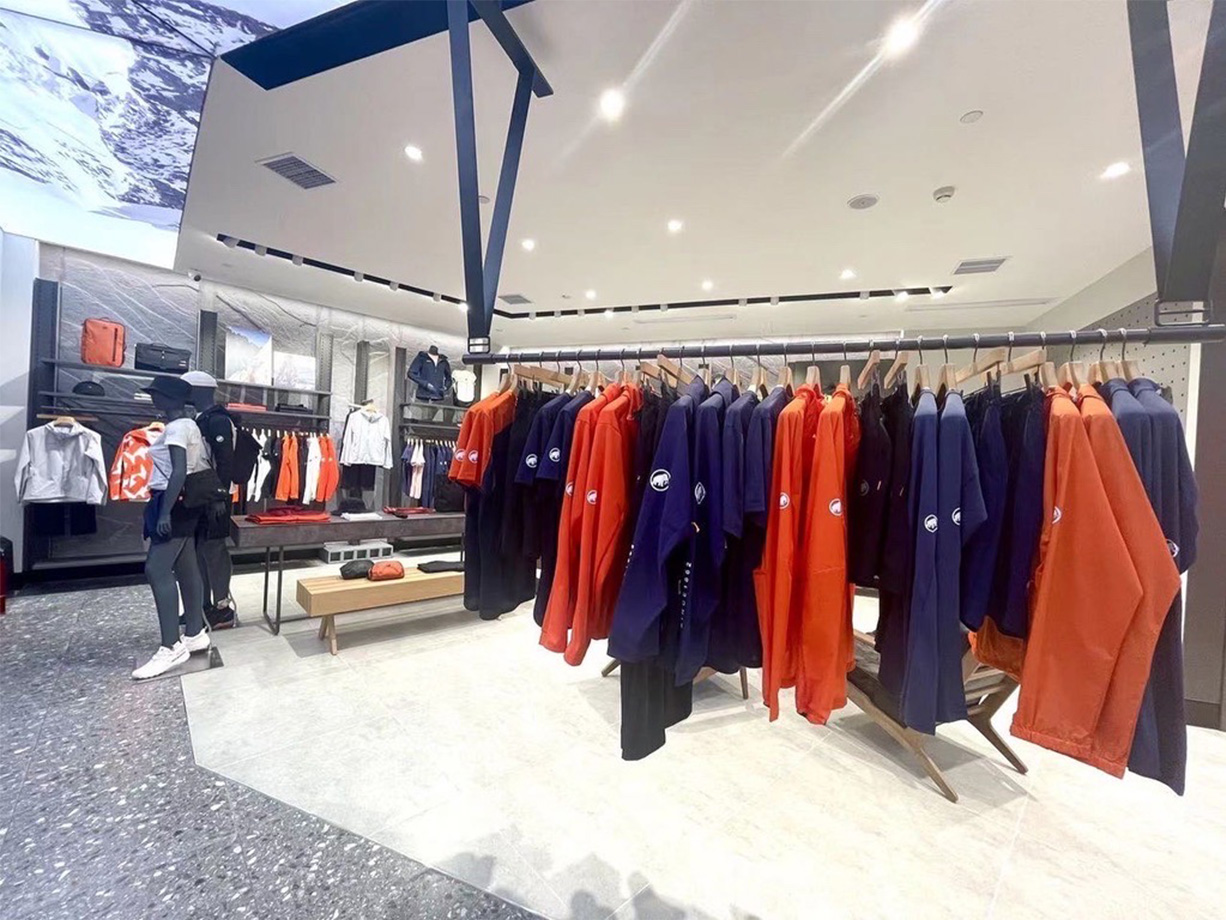 Nanjing Deji store, from March to may 2022, Shanghai experienced the strictest lockdown due to the covid-19. During this period, damo-union still eliminated all kinds of difficulties and completed the construction of the new store and the production of shopfittings for Mammut in Nanjing. During this period, it controlled all time nodes by means of remote monitoring,